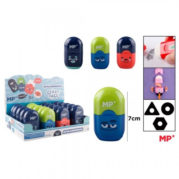 Ascuțitoare de creion cu recipient pentru așchii și radieră. Lama protejata pentru a evita taieturile.