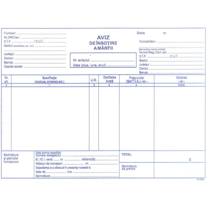 Aviz de insotire a marfii A5 autocopiativ 3 exemplare