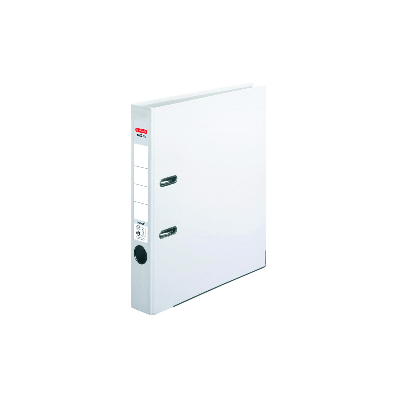 Biblioraft A4 Herlitz, coperta laminata, rame metalice de protectie, eticheta detasabila, 5 cm, logo embosat, certificate FSC Mix si CO2, culoare alb
