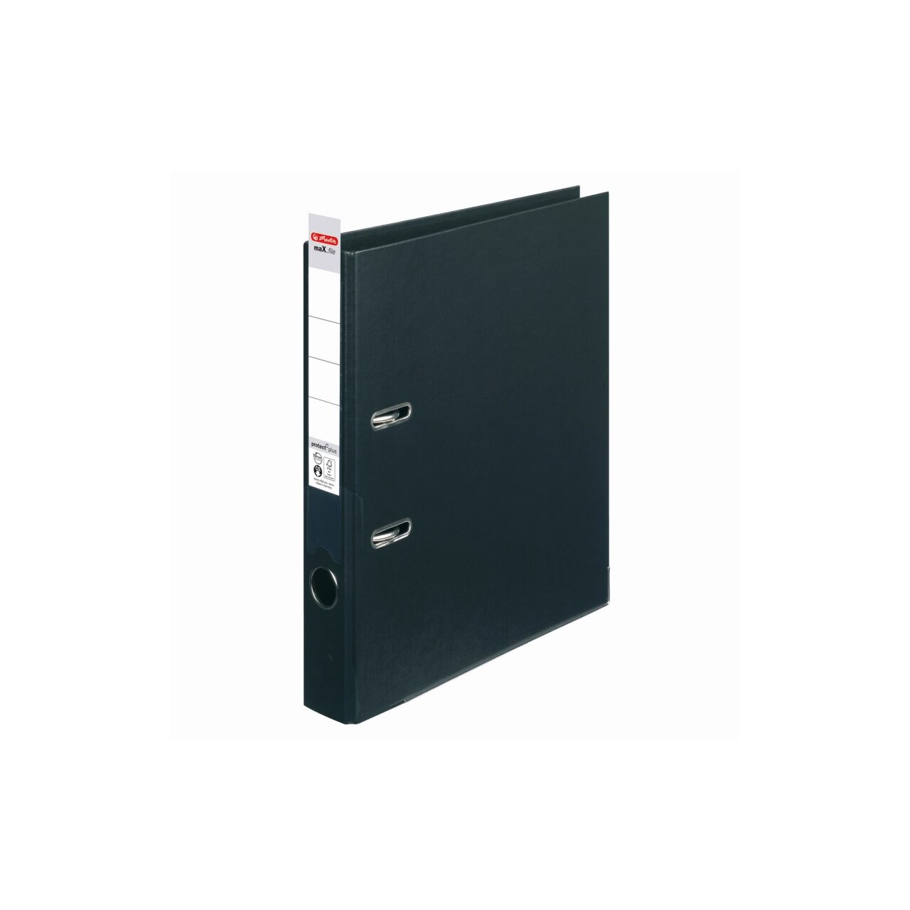 Biblioraft A4 Herlitz, coperta laminata interior exterior color, rame metalice de protectie, eticheta detasabila, 5 cm, logo embosat, certificate FSC Mix si CO2, culoare negru