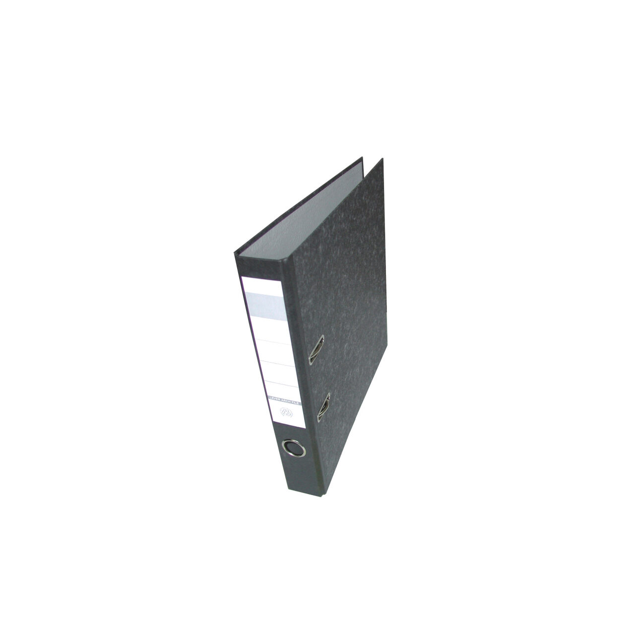 Biblioraft A4 Herlitz, confectionat din carton rigid, culoare negru marmorat, mecanism metalic nichelat, margine metalica pentru protectie, pentru arhivarea documentelor, dimensiuni (mm): 318x285x50.