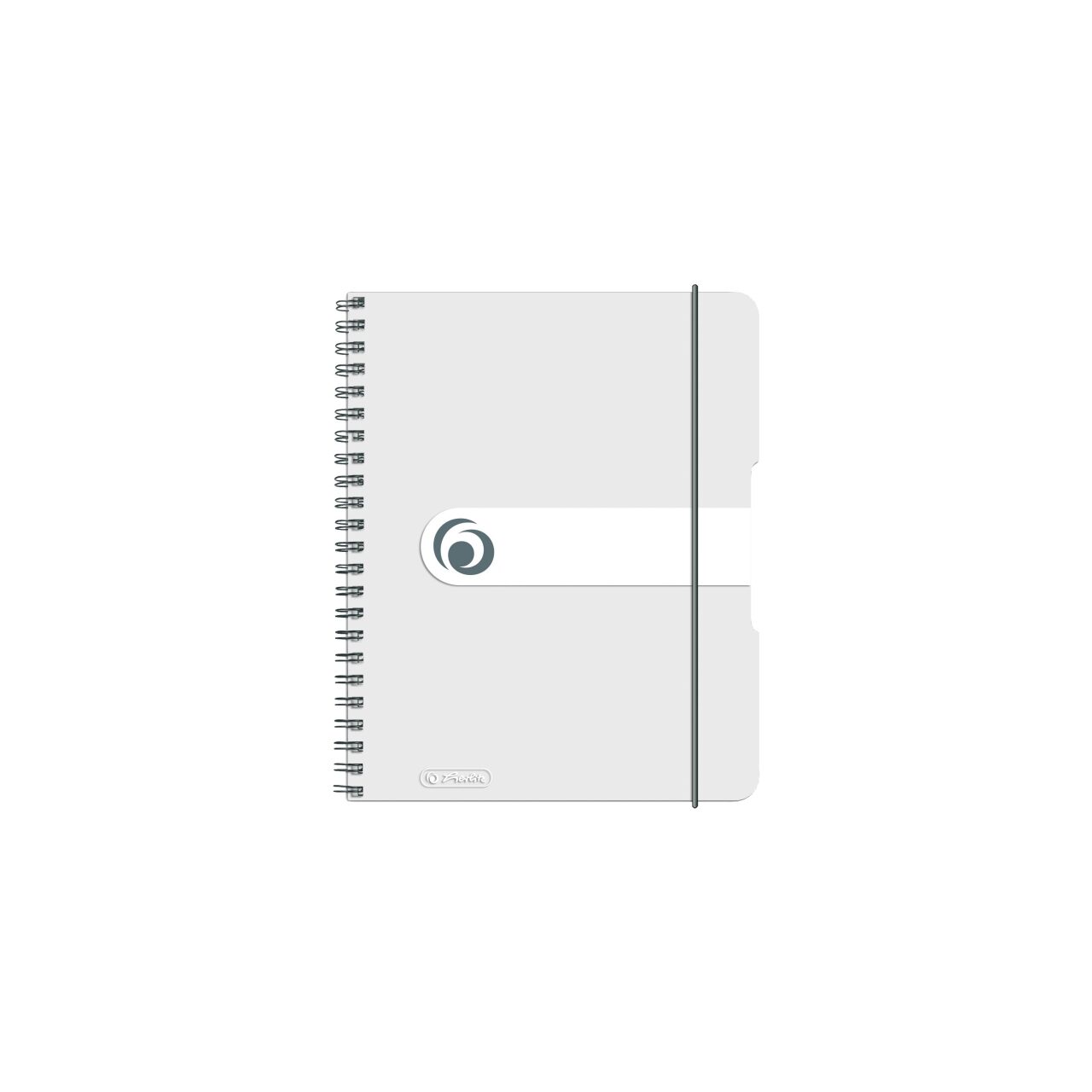 Hartie fara celuloza, alba, 80 grame/mp, 80 file, patratele, colturi rotunjite, spira dubla, coperta PP, transparenta, inchidere cu elastic, format A5