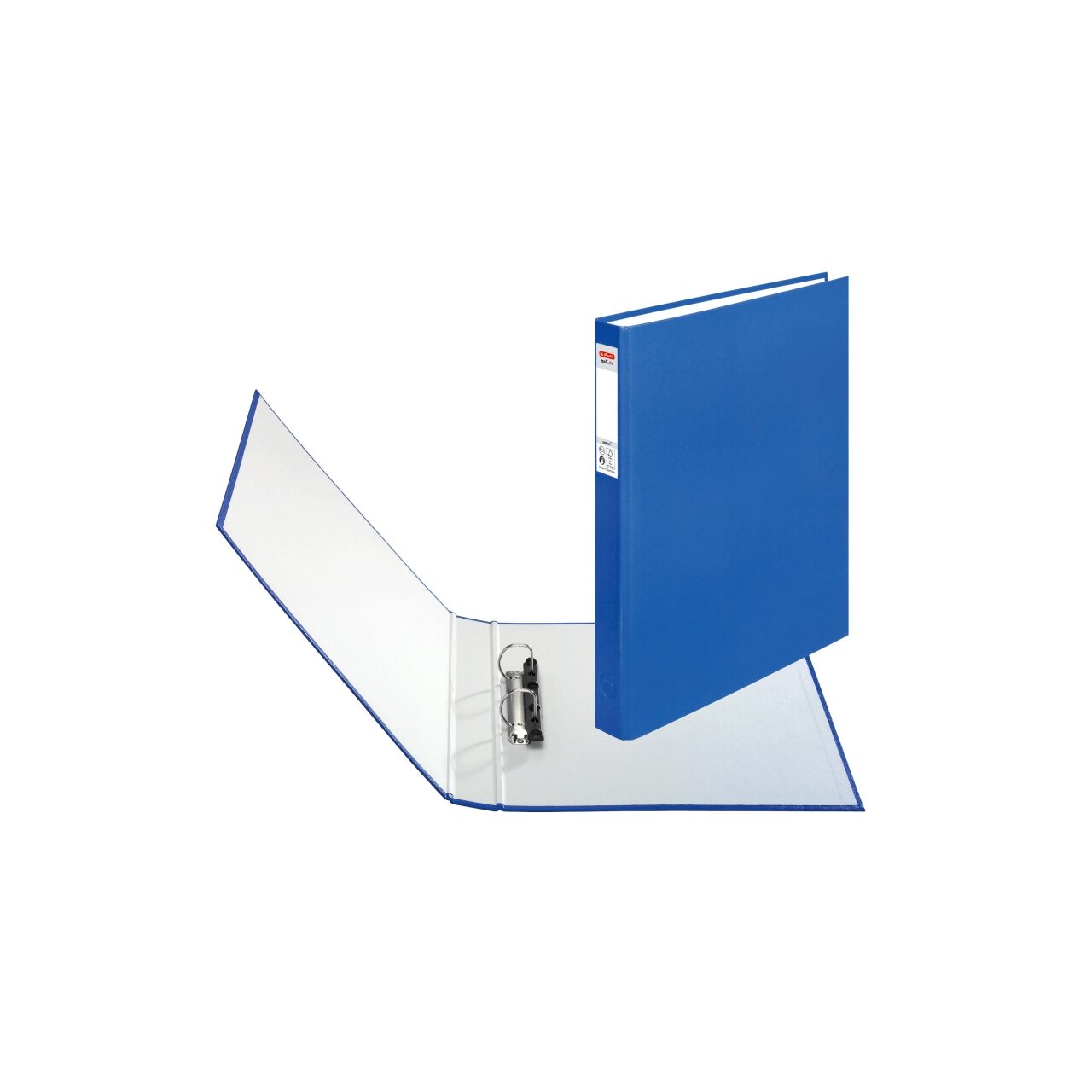 Caiet mecanic A4, Herlitz, coperta din hartie laminata, mecanism cu 2 inele, capacitate 25mm, prevazut cu buzunar pentru eticheta pe partea verticala, certificate FSC Mix si CO2, albastru
