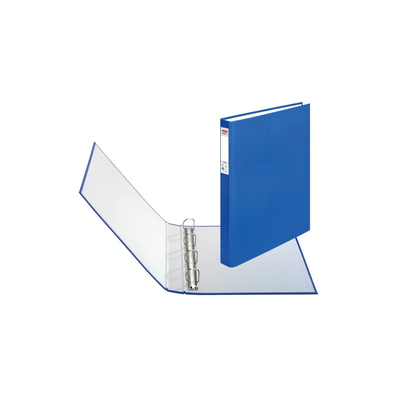 Caiet mecanic A4, Herlitz, coperta din hartie laminata, mecanism cu 4 inele, capacitate 25mm, prevazut cu buzunar pentru eticheta pe partea verticala, certificate FSC Mix si CO2, albastru