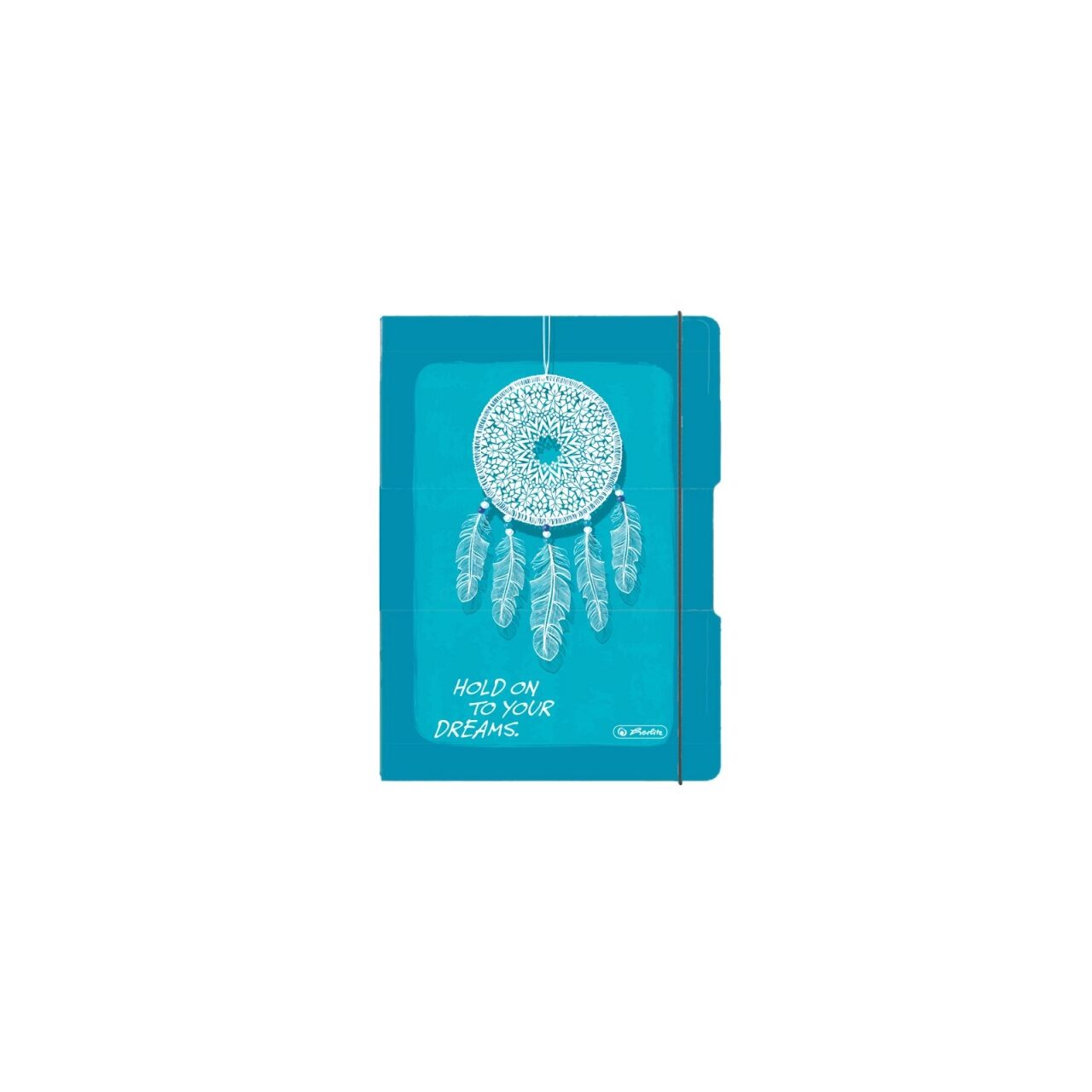 Coperta din carton, format A5, 40 file, hartie 80 grame/mp, dictando, interior interchimbabil, coperta dreams, elastic alb
