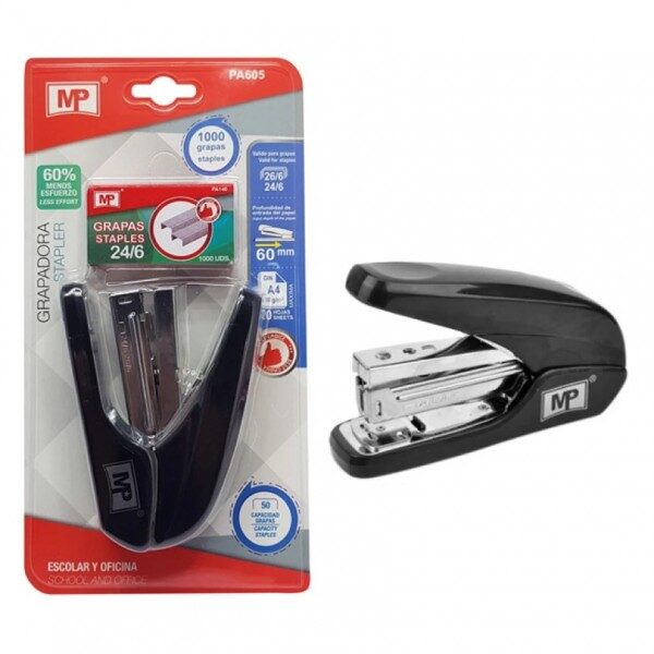 Capsator mediu din plastic cu mecanism metalic, care reduce cu până la 60% efortul la capsare.