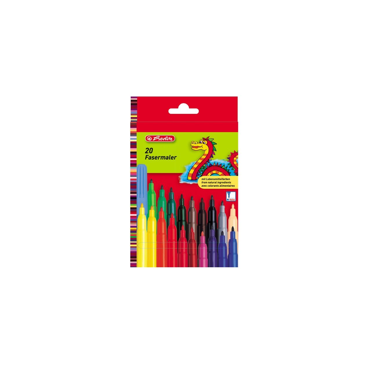 Carioca, Herlitz, 20 culori, cerneala din ingrediente naturale, 2 mm, 20 bucati in cutie suspendabila