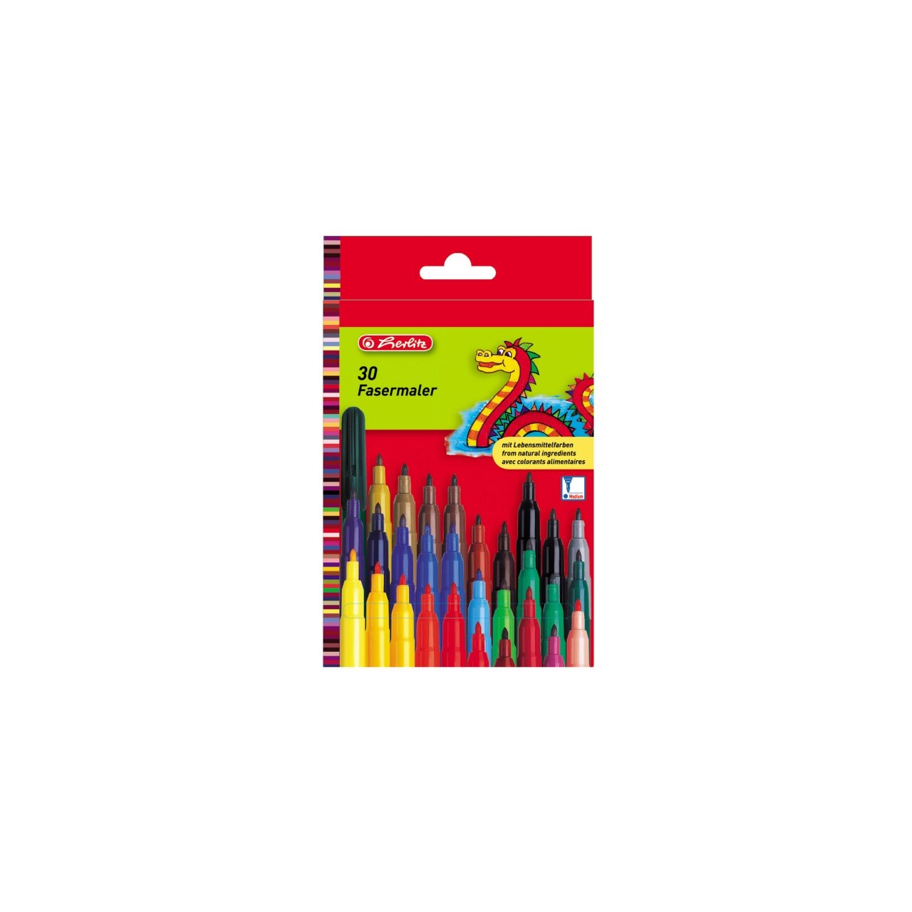 Carioca, Herlitz, 30 culori, cerneala din ingrediente naturale, 2 mm, 30 bucati in cutie suspendabila