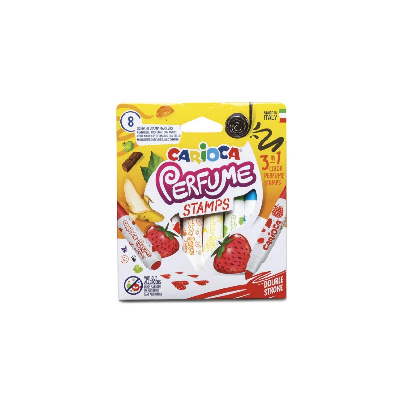 Cariocile Perfume Stamps sunt parfumate doar cu esențe non-toxice, fără alergeni. Capătul conic este perfect pentru linii subțiri sau groase, iar cel tip ștampilă are 8 modele diferite, fiecare cu altă aromă.