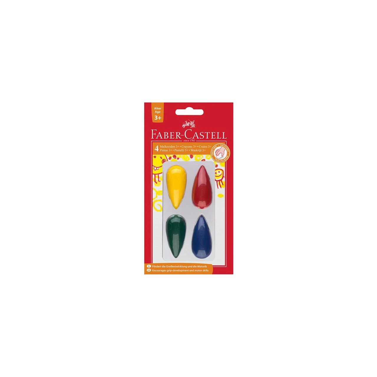 Perfecte pentru tranzitia catre un instrument de scris/desen cu grip. 4 culori luminoase. Mainile copilului raman curate. Se pot sterge cu ajutorul radierelor. Blister 4 buc.
