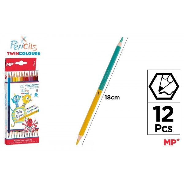 - Setul include: 12 creioane colorate bicolore, echivalentul a 24 de culori diferite.