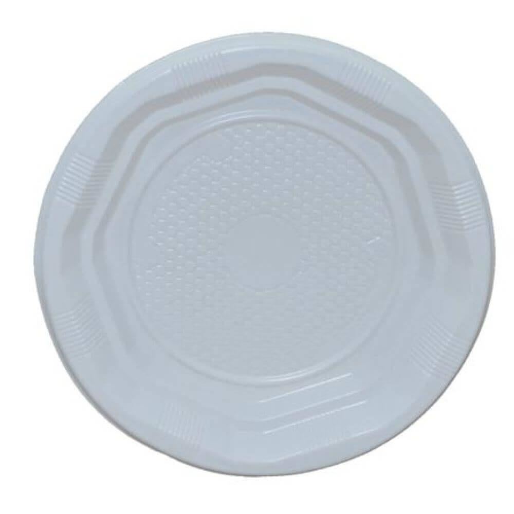 Farfurii plate din plastic albe cu diametru de 21 cm