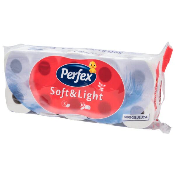 Hârtie igienică Perfex Soft&Light, 3 straturi, 100% celuloză, 10 role/set
