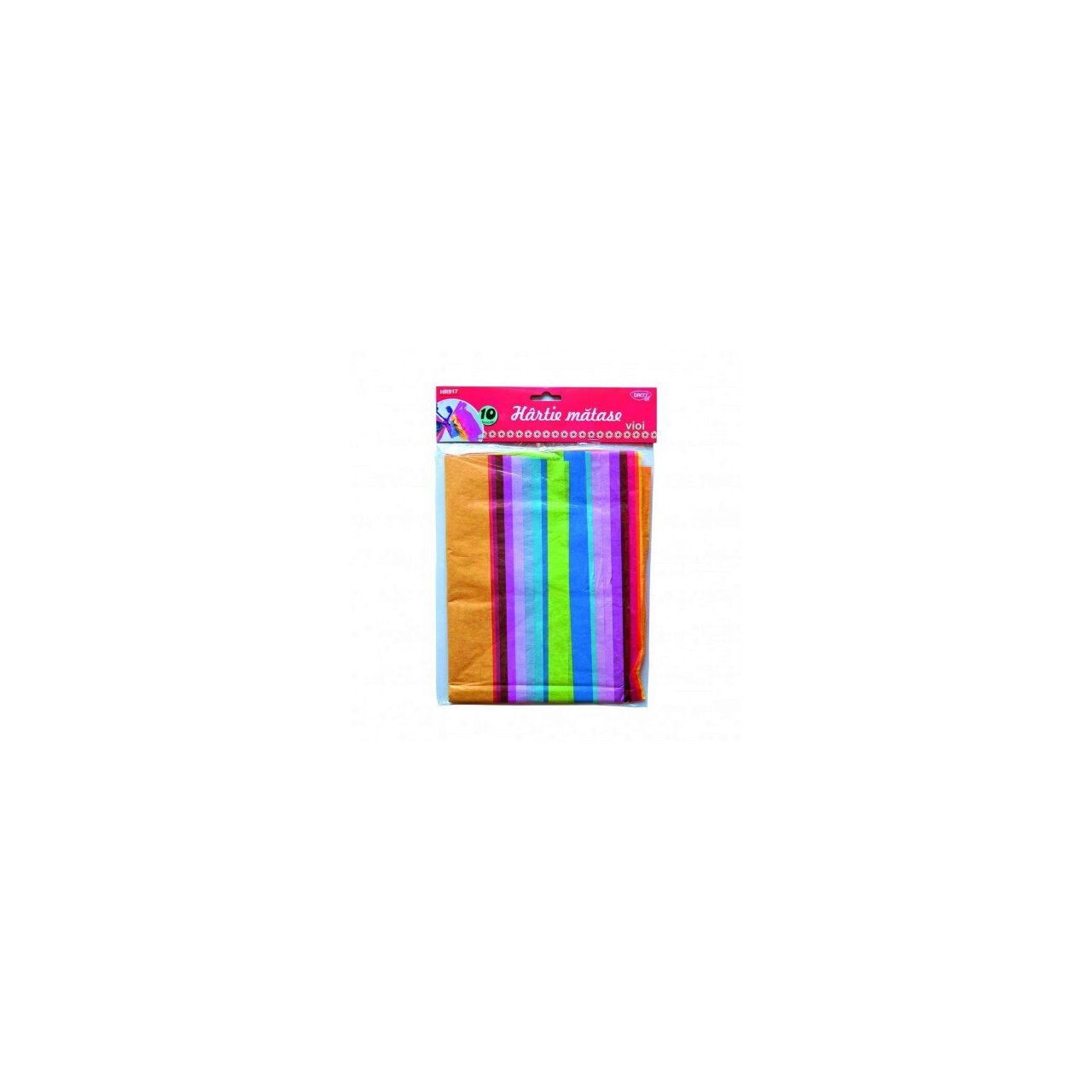 Hartie matase, 10 culori, 10 bucati.Dimensiuni: 65.5 x 50 cm