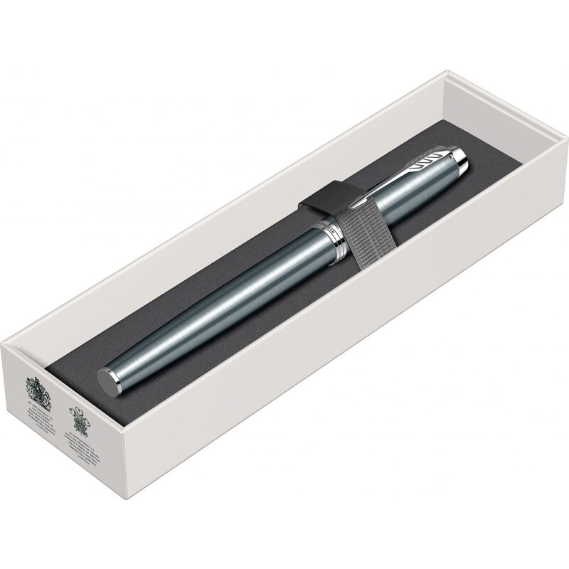 Penita din otel inoxidabil polisat placata cu crom, avand in varf pastila de iridiu. Stiloul functioneaza atat cu cartuse, cat si cu convertor.