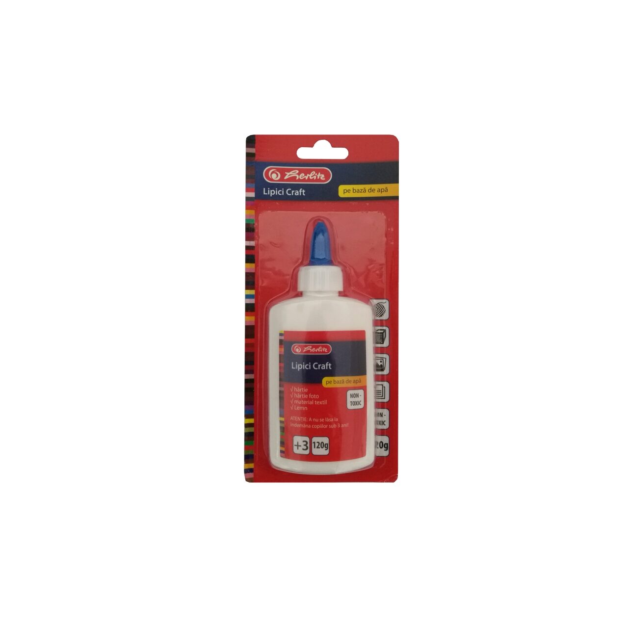 Lipici lichid non-toxic; Herlitz, utilizat pentru lipirea materialelor confectionate din: hartie, hartie foto, carton, textile, lemn; tub din materail plastic; capacitate recipient: 120 grame; prezentare pe blister