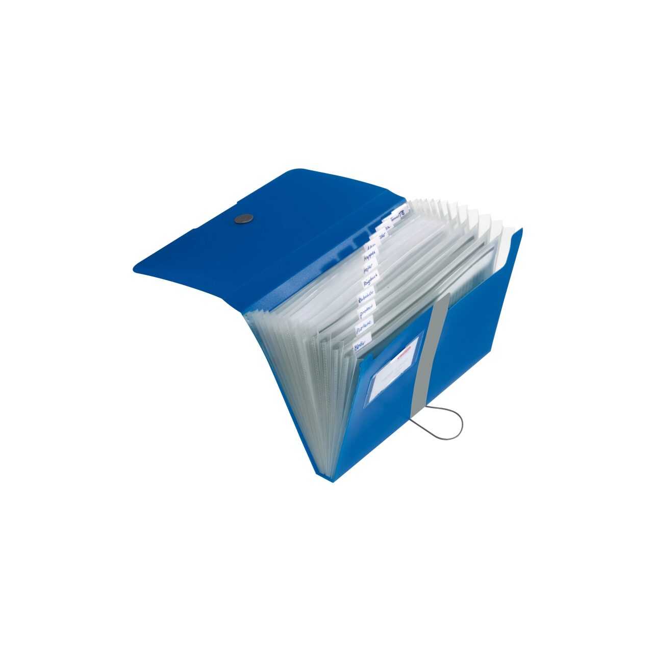 Mapa PP A4 Eotg expandabila, inchidere buton cu elastic, 12 compartimente+ index, Albastru