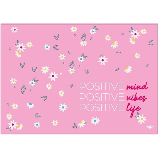 Aceasta mapa de protectie de birou din plastic rezistent la apă prezintă flori si mesaje pozitive.