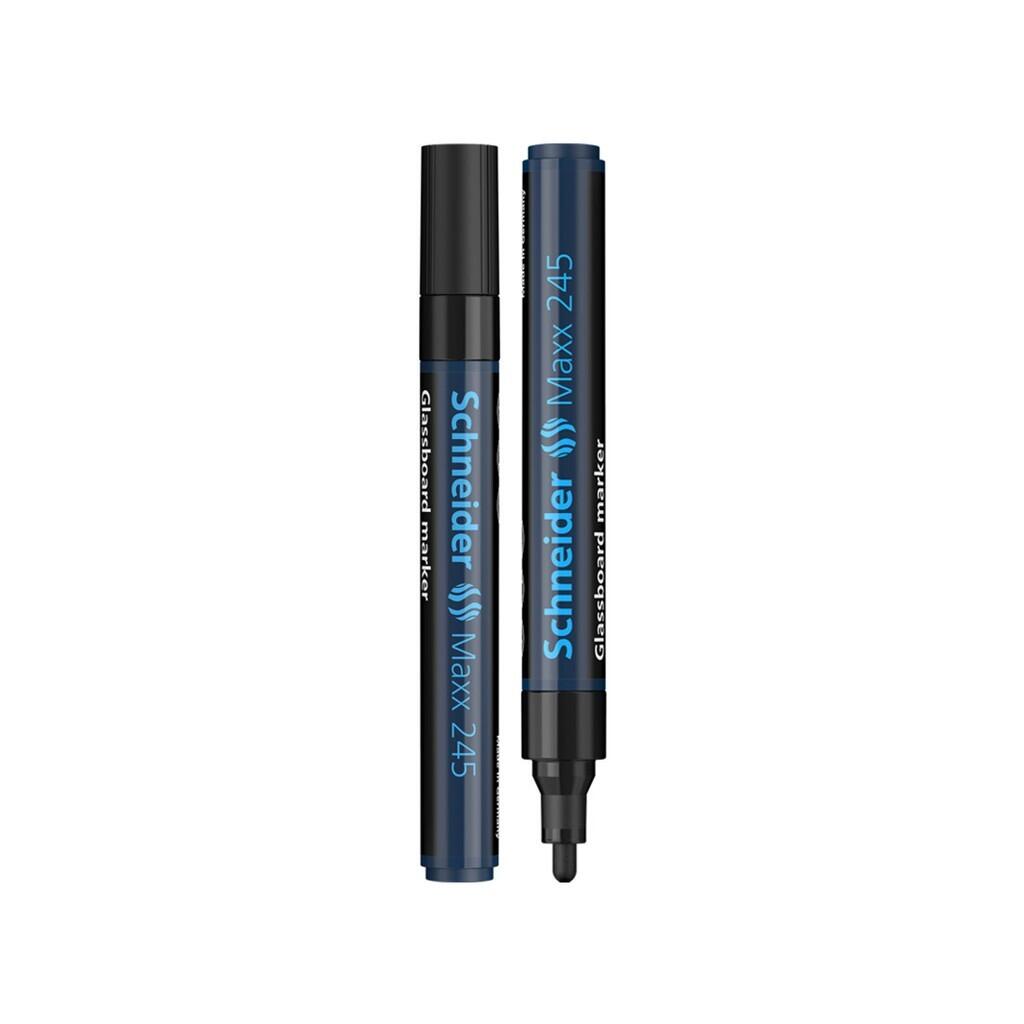 Markerele pentru sticlă Schneider Maxx 245 dispun de un vârf rotund, ideal pentru suprafețele lucioase și tabla de sticlă.