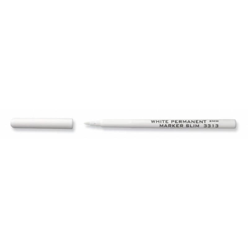 Markerele umplute cu cerneala permanenta alba au putere mare de acoperire. Pot fi utilizate pe diverse tipuri de hartie si materiale neporoase tip metal, plastic, sticla, ceramica, cabluri, etc. Urma lasata este partial rezistenta la abraziun, are o latime de 2-3mm si o lungime a traseului de 350m. Pastrarea pe timp indelungat este recomandat a se face la orizontala, iar inainte de a se utiliza sa se tina cu capacul in jos.