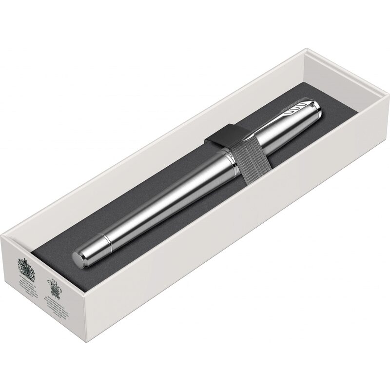 Penita din otel inoxidabil polisat, avand in varf pastila de iridiu. Stiloul functioneaza atat cu cartuse, cat si cu convertor