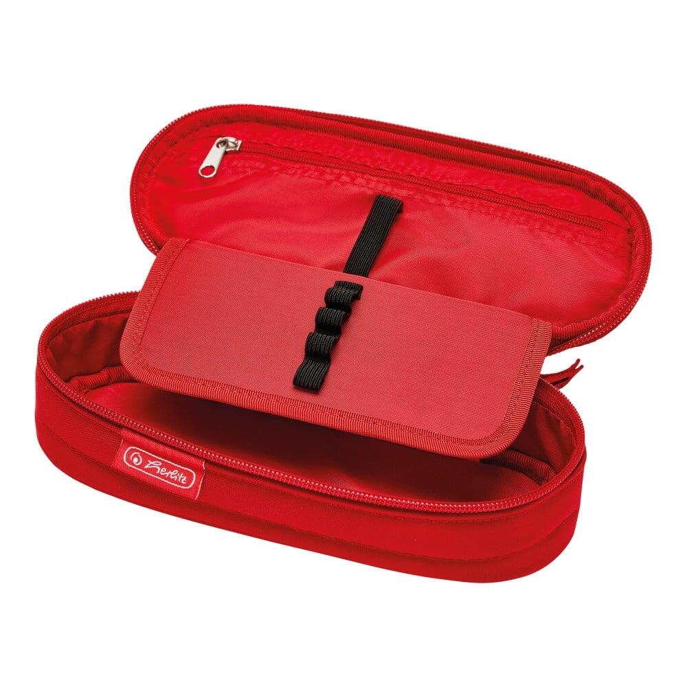 Penar tip etui oval, poliester, dimensiune 21,5 x 9 x 6 cm, un compartiment principal spatios, buzunar interior cu fermoar, locasuri pentru instrumente de scris, inchidere cu fermoar, motiv Cute Animals Zebra, rosu.