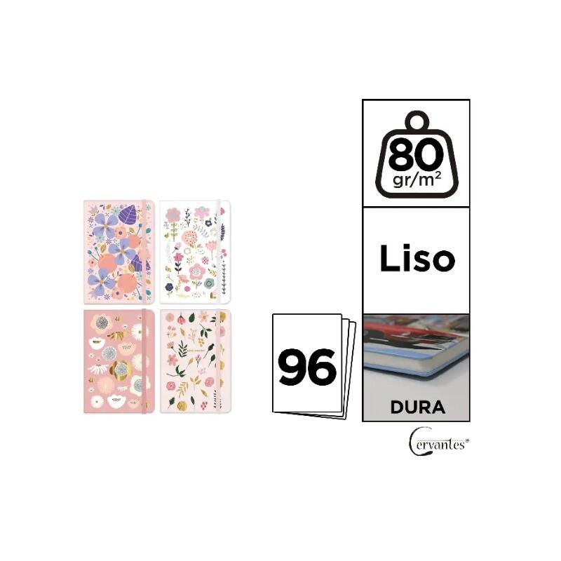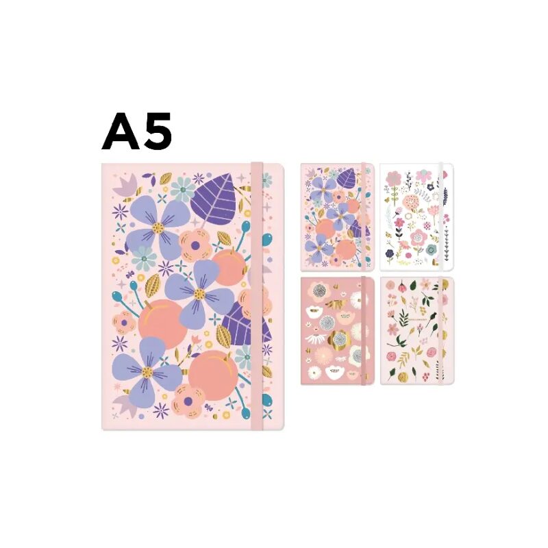 Bloc notes 96 file A5 cu elastic, motiv flowers