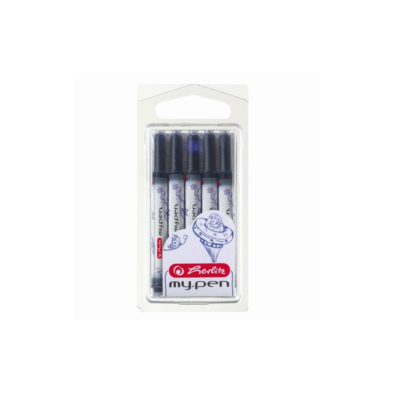 Patroane stilou My.Pen, Herlitz, potrivit pentru majoritatea stilourilor, universale, 4 modele diferite, albastru, poate fi stearsa, 1 x 5 bucati, vrac