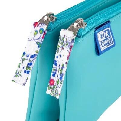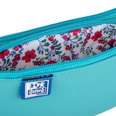 Instrumentele de scris sau cosmeticele sunt protejate de captuseala din poliester si fermoarele cu pandantiv asortat. Acest etui dublu cu forma dreptunghiulara si motiv floral subtil, este o completare perfecta a colectiei de accesorii pentru fiecare eleva sau studenta si se asorteaza perfect cu colectia de caiete Oxford, datorita culorilor perfect reproduse si a finisajului satinat.
