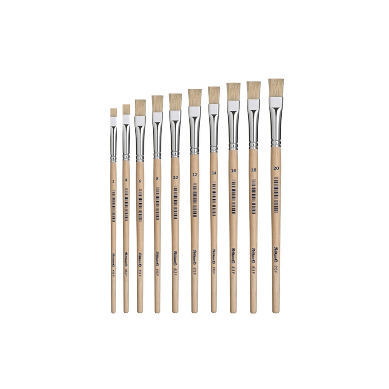 Pensula cu varf tesit, din par natural de porc, corp din lemn natur, manseta din aluminiu, marimea 12, ambalata in cutie de carton