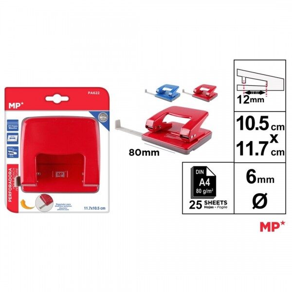 Perforatorul MP PA622 este un perforator metalic cu două găuri, potrivit pentru utilizare universala.