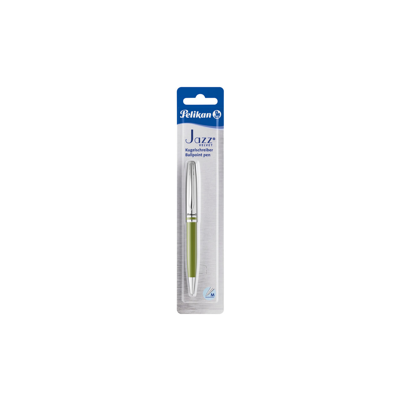 Pix jazz velvet, corp din metal, mecanism rotativ, mina interschimbabila tip Parker, scriere mina albastra, culoare verde olive, prezentare pe blister