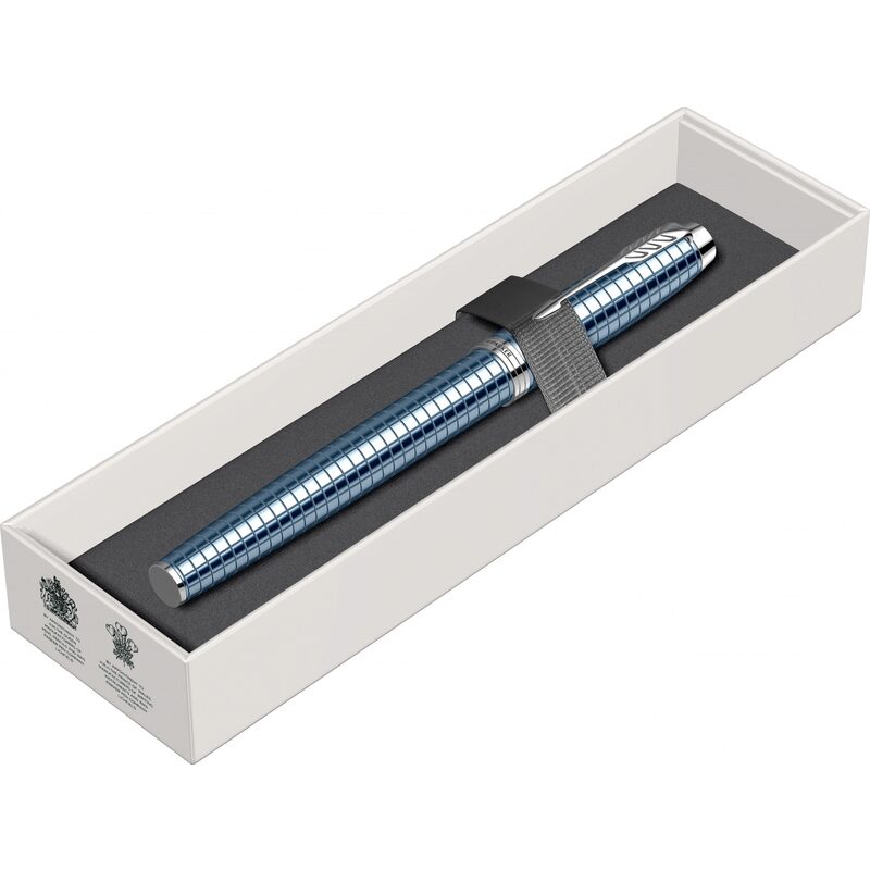 Penita din otel inoxidabil polisat placata cu crom, avand in varf pastila de iridiu. Stiloul functioneaza atat cu cartuse, cat si cu convertor.