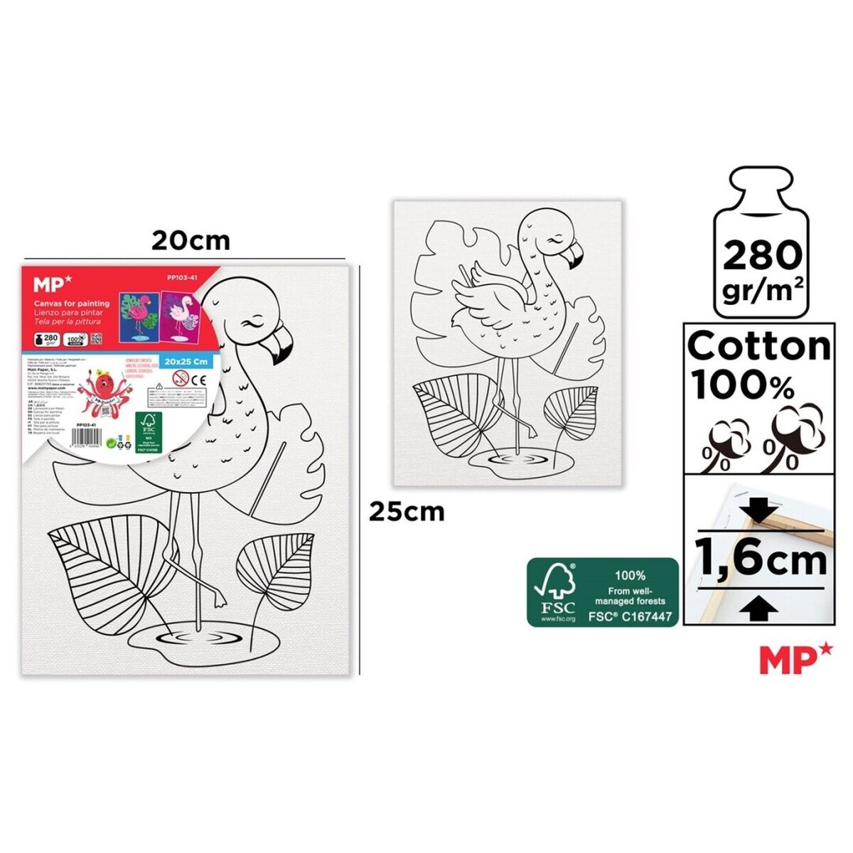 Rama cu Panză 20x25cm pentru pictura, predesenata cu flamingo, perfecta pentru initierea in arta.