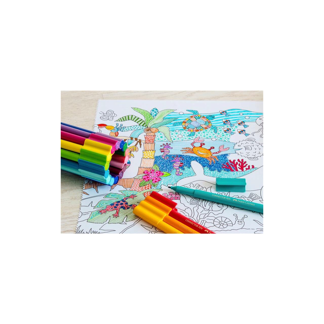 Hartie de inalta calitate destinata colorarii. Pentru rezultate maxime, foloseste instrumentele de colorat Faber-Castell. Dimensiune rola 3.2m. Motive cu jungla si ocean. Pot fi utilizate creioane colorate, carioci, creioane cerate sau creioane grafit.