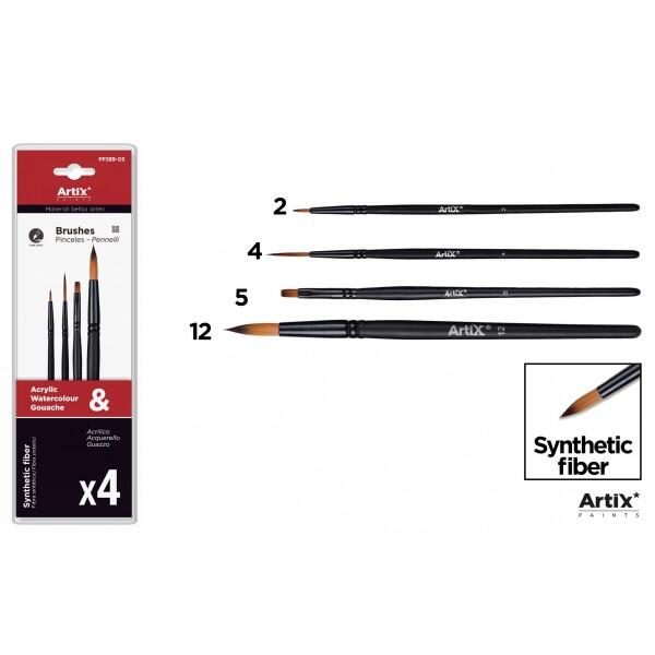 Set pensule profesionale din par sintetic, cu coada scurta, varf liner, drept si rotund, Artix.