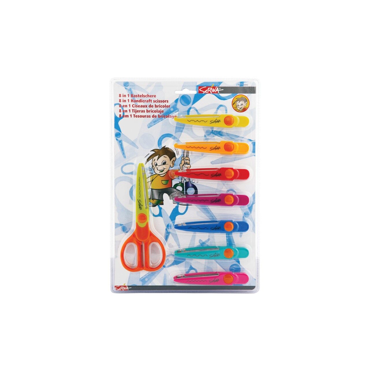 Set foarfecă zigzag Scriva cu lamă zimțată din oțel inoxidabil, pentru tăiere în diverse modele, acoperită cu plastic ABS, un material de 30 de ori mai durabil decât plasticul obișnuit.