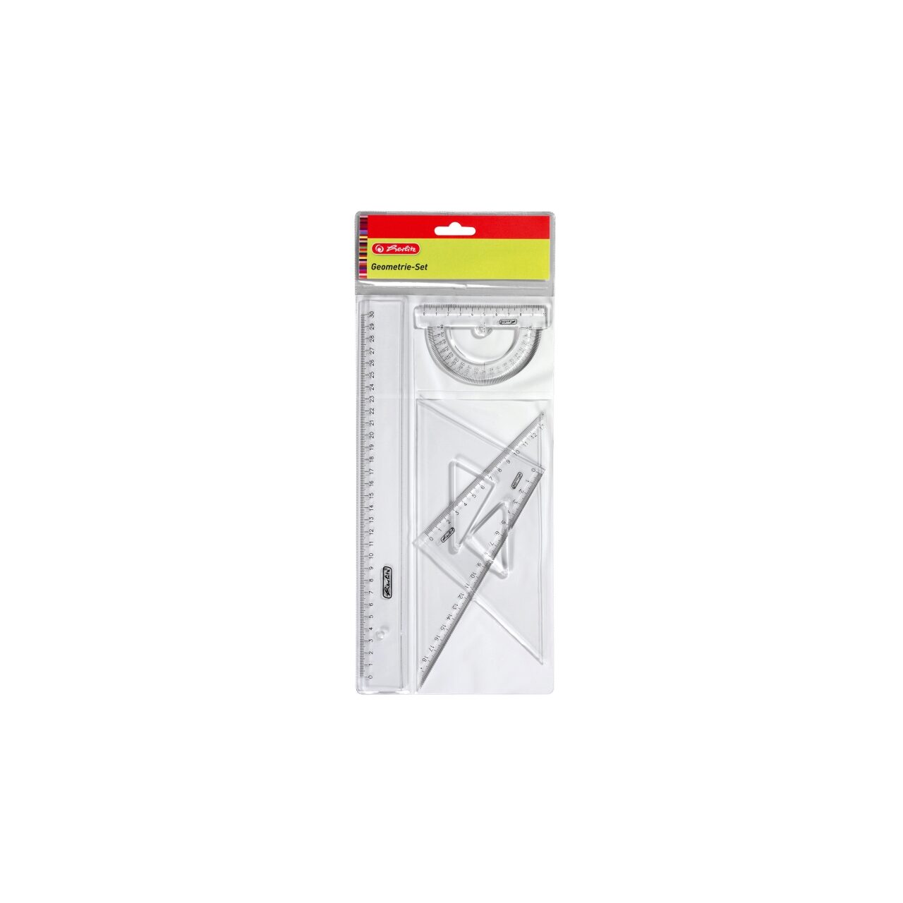 Set geometrie, Herlitz, plastic, 1 rigla 30 cm, 1 raportor, 1 echer 18 cm/60 grade si echer 13 cm/45 grade, transparent, in pachet transparent