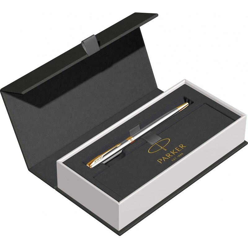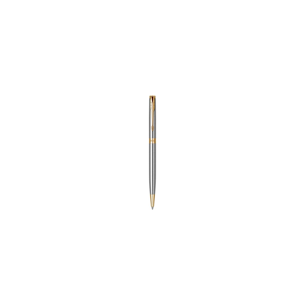 Accesorii din alama placate cu aur de 23K prin tehnologie PVD (Physical Vapor Deposition Systems). Clip din otel inoxidabil placat cu aur de 23K prin tehnologie PVD (Physical Vapor Deposition Systems) Mecanism twist (prin rasucire) Corp superior din otel inoxidabil cizelat cu model brushed Corp inferior din otel inoxidabil cizelat cu model brushed Mina pix Parker (vezi consumabile)