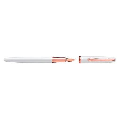 Stiloul din metal Jazz Noble Elegance se caracterizeaza prin liniile curbe si rafinate, finisajul deosebit si o culoare de o eleganta atemporala. Nobil, usor si deosebit de elegant, acest stilou ofera o experienta de scriere superioara, specifica noii generatii de instrumente de scris Jazz Noble. Corpul superior si inferior al acestui instrument de scris este lacuit alb perlat si se armonizeaza perfect cu penita, inelul ?i cu clipsul de prindere. Clipsul este in forma de cioc, element specific brandului Pelikan si este prevazut cu un arc robust, care il face deosebit de rezistent. Alimentarea acestui stilou este cu patron cu cerneala. Penita este de dimensiune M din otel inoxidabil si este potrivita pentru un scris de mana cursiv si usor. Caracteristici: ? Design elegant, atemporal ? Aspect perlat, culoare la moda ? Clips flexibil si robust, datorita mecanismului pe baza de arc ? Greutate echilibrata, ergonomic ? Penita de dimensiune M din otel inoxidabil ? Contine un patron cu cerneala albastra ? Culoare corp stilou: alb perlat
