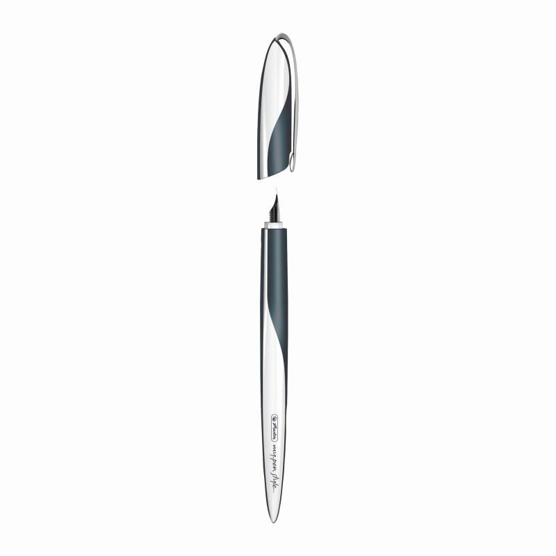 Herlitz, My.Pen Style, plastic, metal, varf penita 0.9 mm, 1.4 mm, 1.9 mm, grip ergonomic , pentru stangaci si dreptaci, model Dark Shale, 1 bucata/cutie