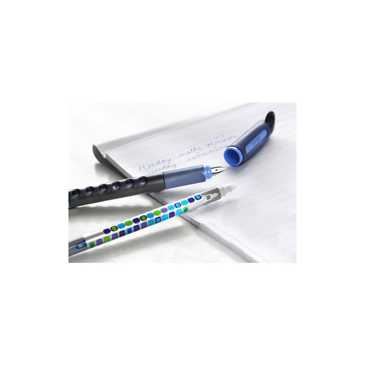 Zona grip ergonomica din material moale, care faciliteaza folosirea celor 3 degete pentru prinderea stiloului in mana. Ideal pentru incepatori. Zona gripului special proiectata si adaptata pentru stangaci si dreptaci. Penita de calitate din iridiu, stabila si rezistenta la presiune. Cartuse cerneala standard. Mici ferestre pentru controlul nivelului de cerneala din cartus. Forma speciala a capacului previne alunecarea acestuia de pe birou. Prezentarea gamei SCRIBOLINO!