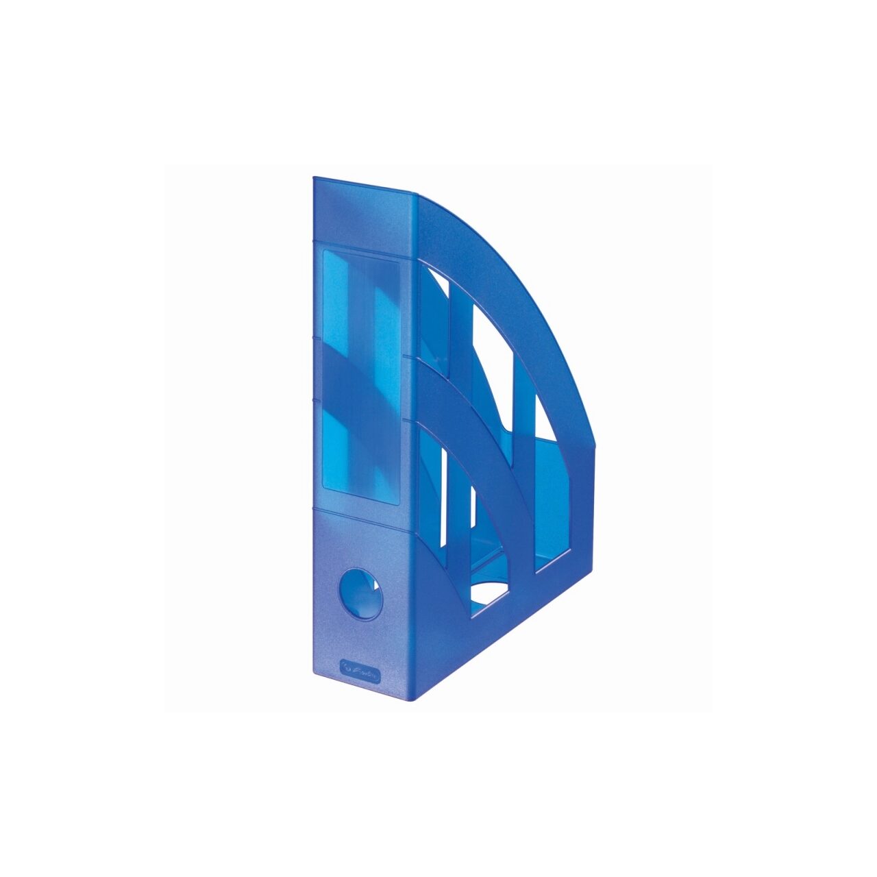 Suport dosare A4 - C4 Herlitz, dimensiune: 7,6 x 31,8 x 24,5 cm, confectionat din material plastic, design clasic, manevrare usoara, ferestre pe ambele parti, loc pentru etichetare, culoare albastru deschis translucid