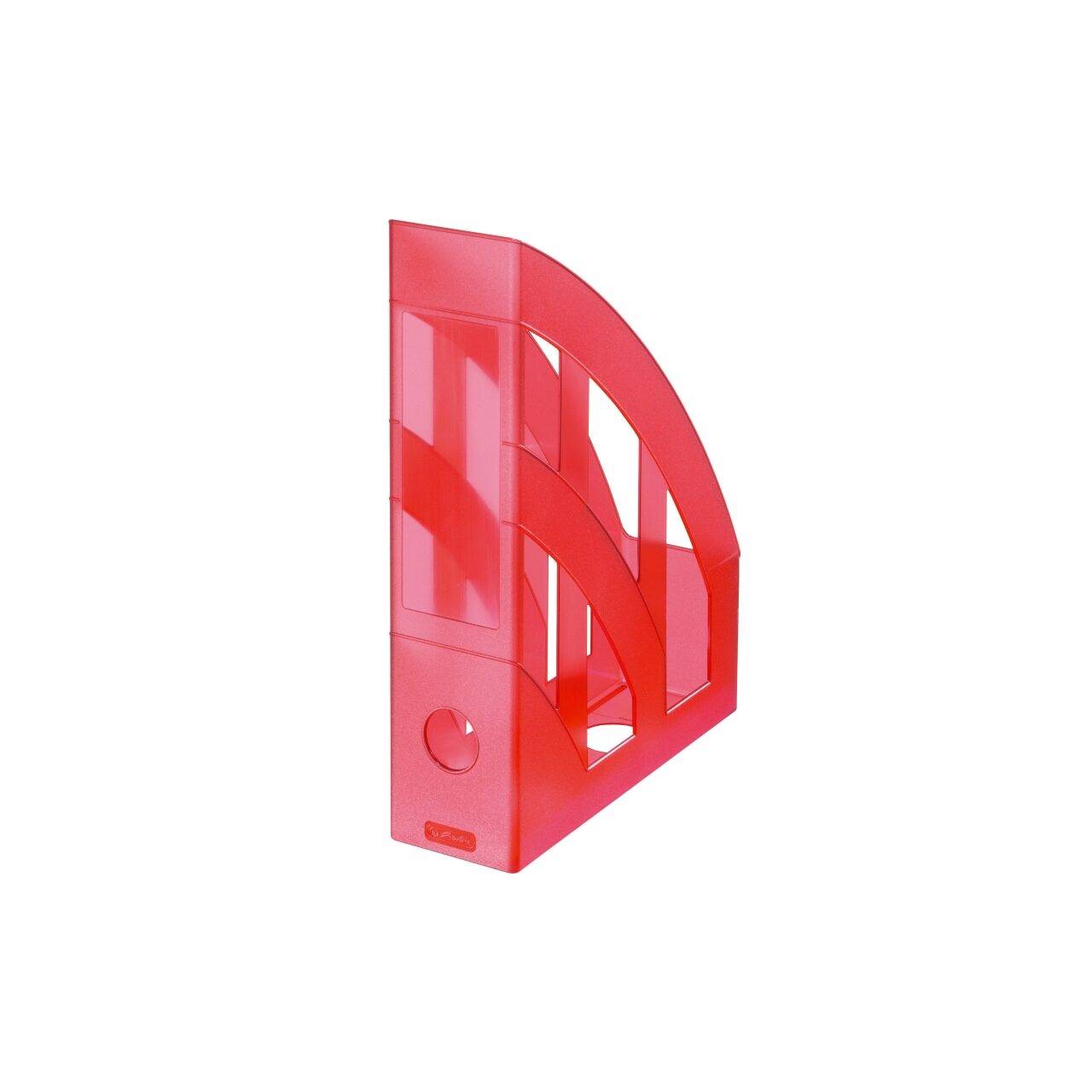 Suport dosare A4 - C4 Herlitz, dimensiune: 76x318x245,confectionat din material plastic, design clasic, manevrare usoara, ferestre pe ambele parti, loc pentru etichetare, culoare rosu translucid