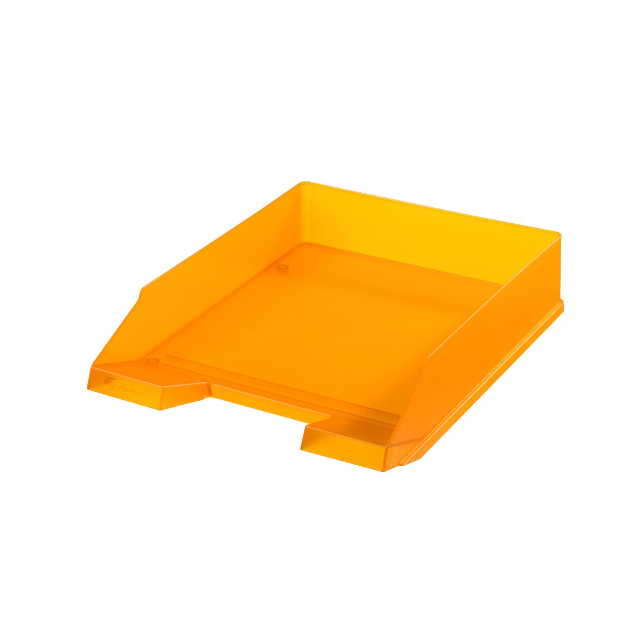 Tavita pentru documente A4 - C4 clasic Herlitz, plastic, design clasic, se pot suprapune mai multe unitati pentru o mai buna organizare, culoare portocaliu translucid