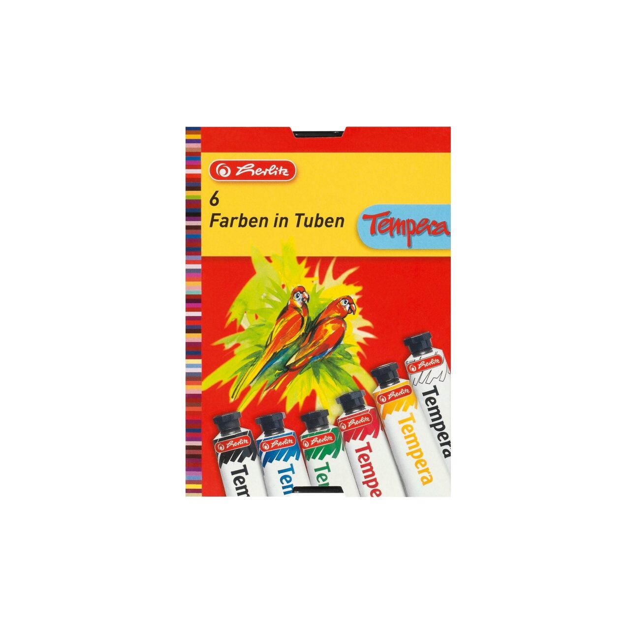 Culori Tempera, Herlitz, 6 tuburi a cate 16 ml/tub, 6 culori solubile in apa, culori intense, grad de acoperire bun, mixabile, set 6 tuburi in caseta de plastic