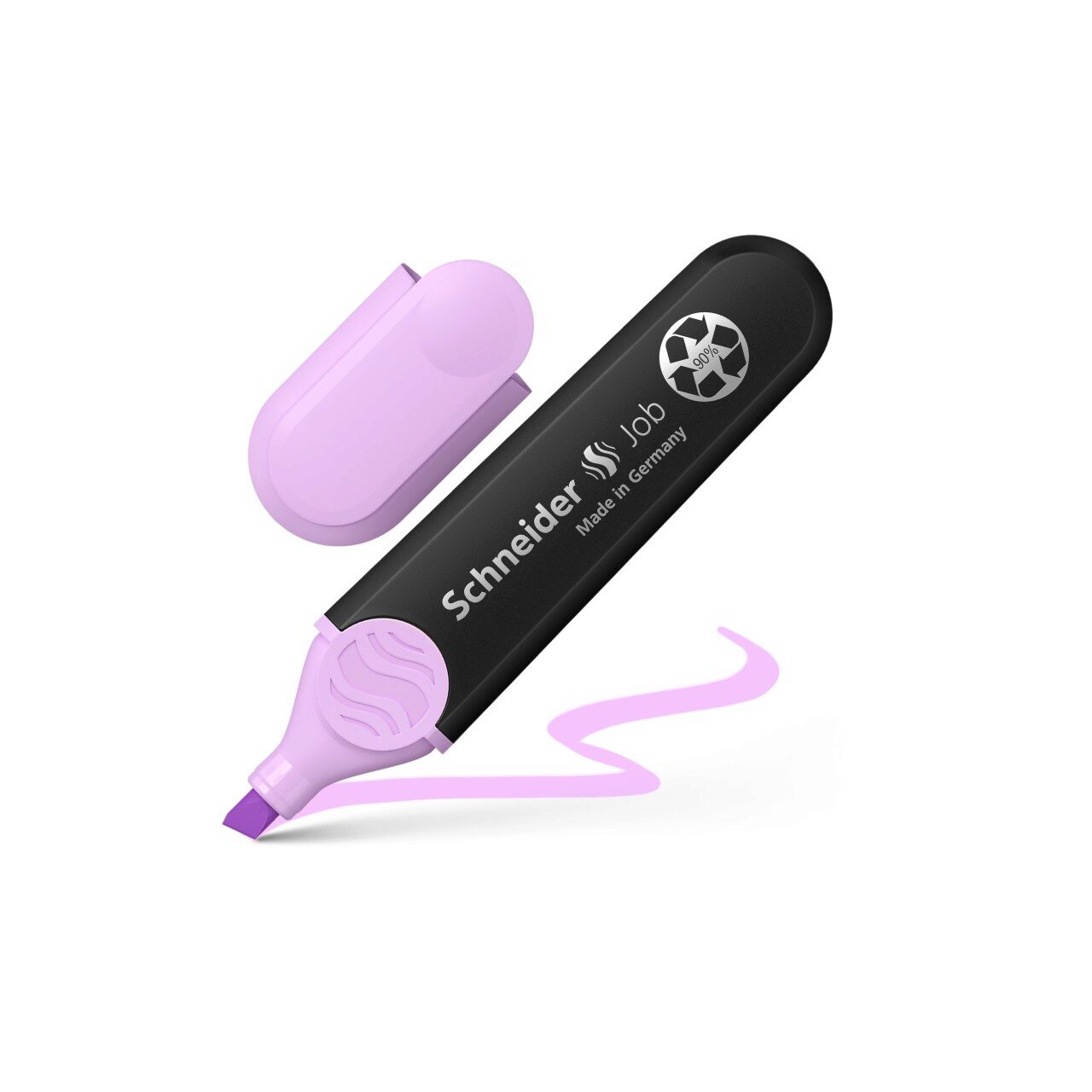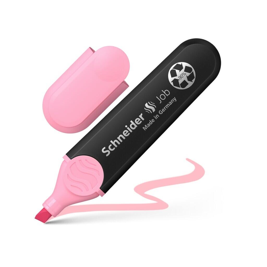 Textmarker Schneider Job Pastel, perfect pentru evidențiere pe hârtie standard, de copiator și de fax. Poate evidenția mai mult de 15.000 de cuvinte. Culori trendy, pastelate, puternic vizibile, cu strălucire maximă. Produs premiat cu iF și Reddot Design Award.